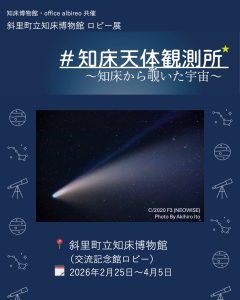 博物館資料から斜里の鉄道の歴史に迫る展覧会を開催中です。今月は担当学芸員による見どころトークも 行います。 ロビー展 会 期:〜12 月 26 日(金) 場所:交流記念館ロビー ギャラリートーク 日時:12月13日(土 […]